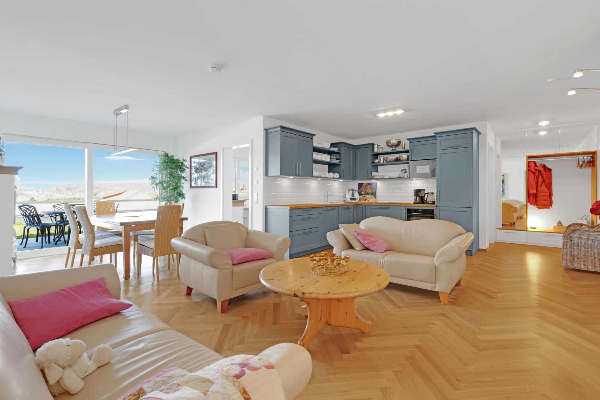 – großzügiger Wohn-Essbereich mit offener Einbauküche