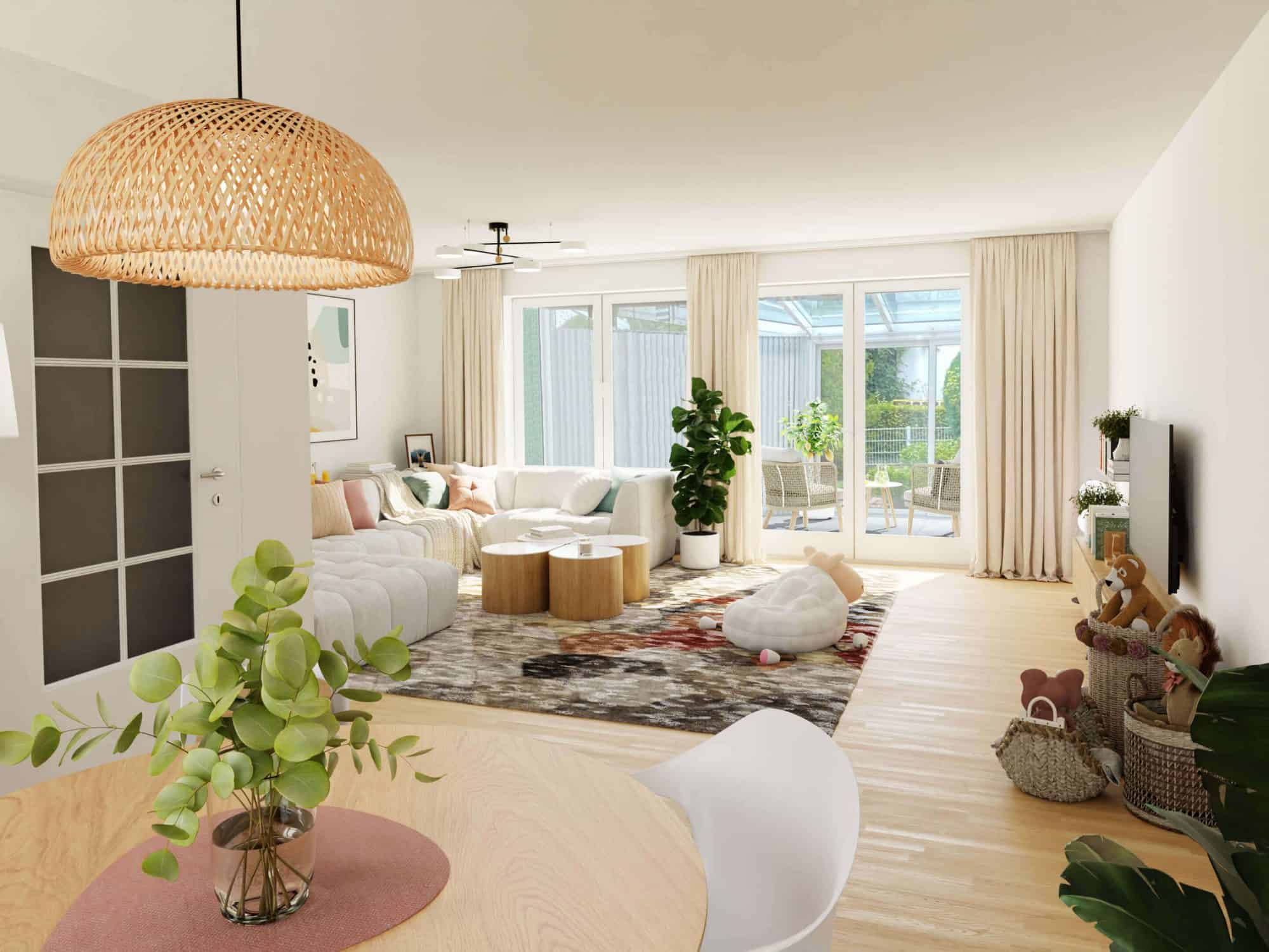 Das Erdgeschoss besticht durch den offenen Wohn- und Essbereich mit Zugang zum geräumigen Wintergarten und Blick auf den nach Süd-Westen ausgerichteten Garten. Vom Essbereich geht es direkt in den wunderschön angelegten rückwärtigen Gartenbereich – ideal als Frühstücksterrasse oder Leseecke. Eine großzügige Einbauküche mit separatem Hauswirtschaftsraum, ein Gäste-WC sowie eine geschlossene Diele mit Garderobe ergänzen das Erdgeschoss.