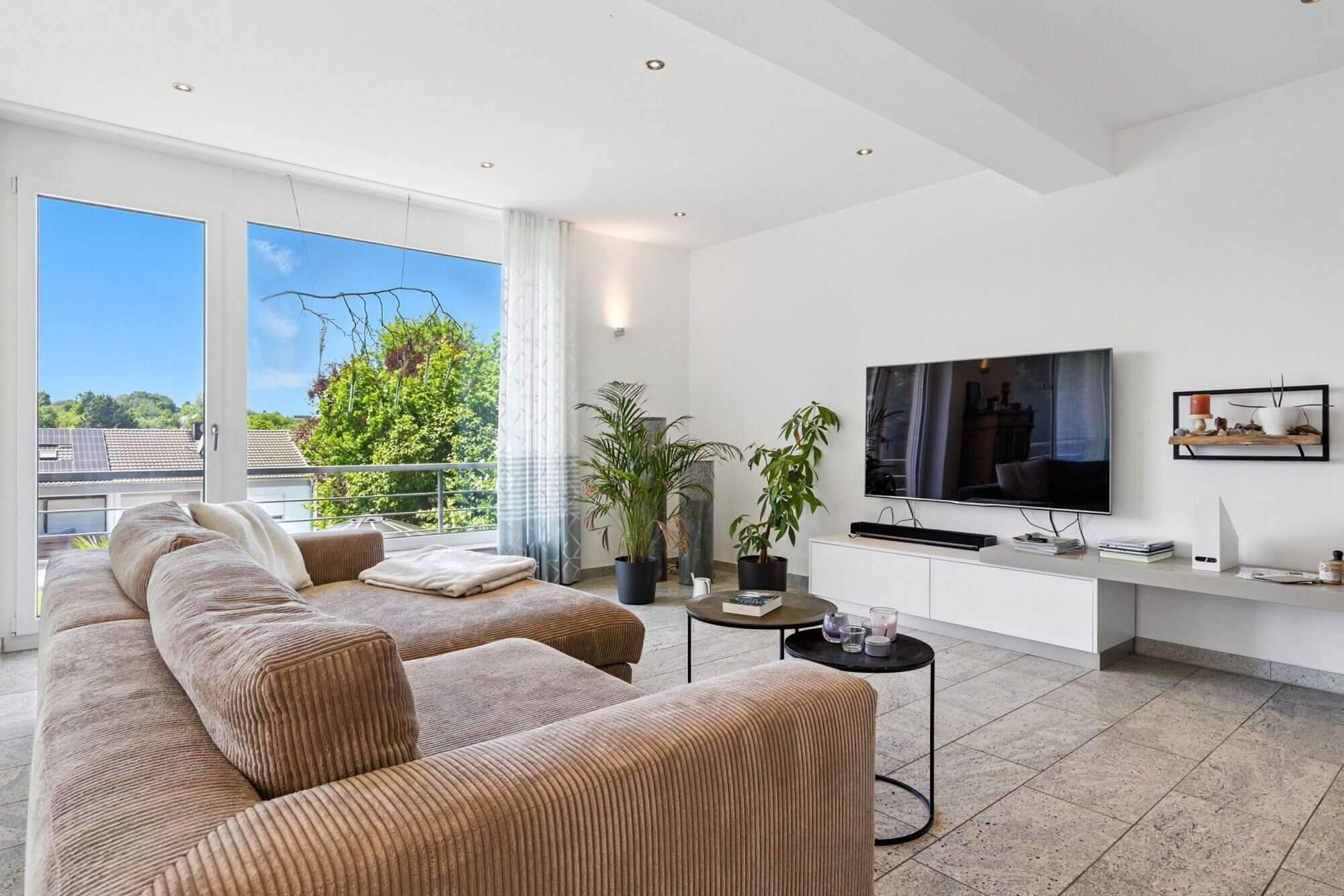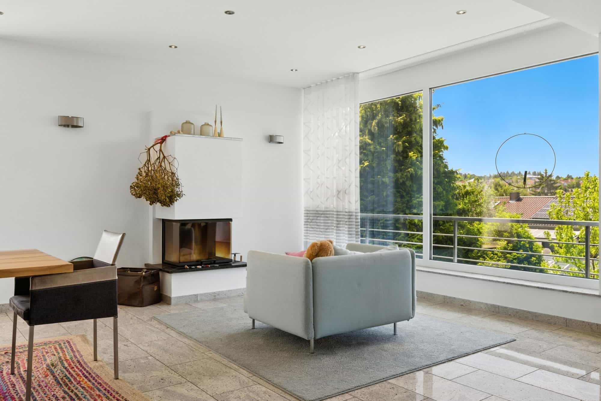 Mit seinen großzügig geschnittenen Räumen, modernen Bädern und einer stilvollen, zeitlosen Aufteilung bietet das Objekt ein Wohnambiente der Extraklasse. Der weitläufige Wohn- und Essbereich mit großen Fensterfronten eröffnet einen beeindruckenden Panoramablick über den Ort Karlsbad – ein tägliches Highlight mit Wohlfühlgarantie.