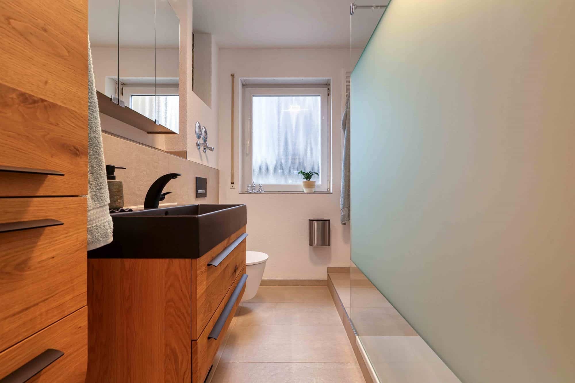 - modernes Tageslichtbad (2023) mit bodentiefer offener Dusche